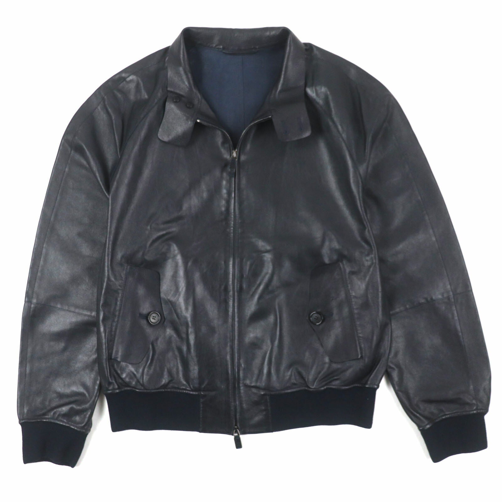 美品□GIORGIO ARMANI ジョルジオアルマーニ 黒タグ パンチングデザイン ウッドボタン テーラードタイプ ラムレザージャケット ネイビー 52 ガーメント付き イタリア製 正規品 メンズ【中古】