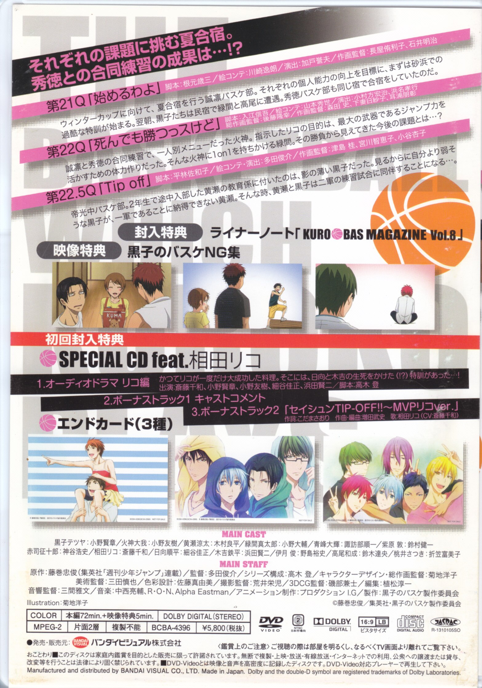黒子のバスケ 黒バス アニメ DVD 2ndseason vol.8 陽泉 紫原敦 氷室辰也 スペシャルCD エンドカードポスカ付