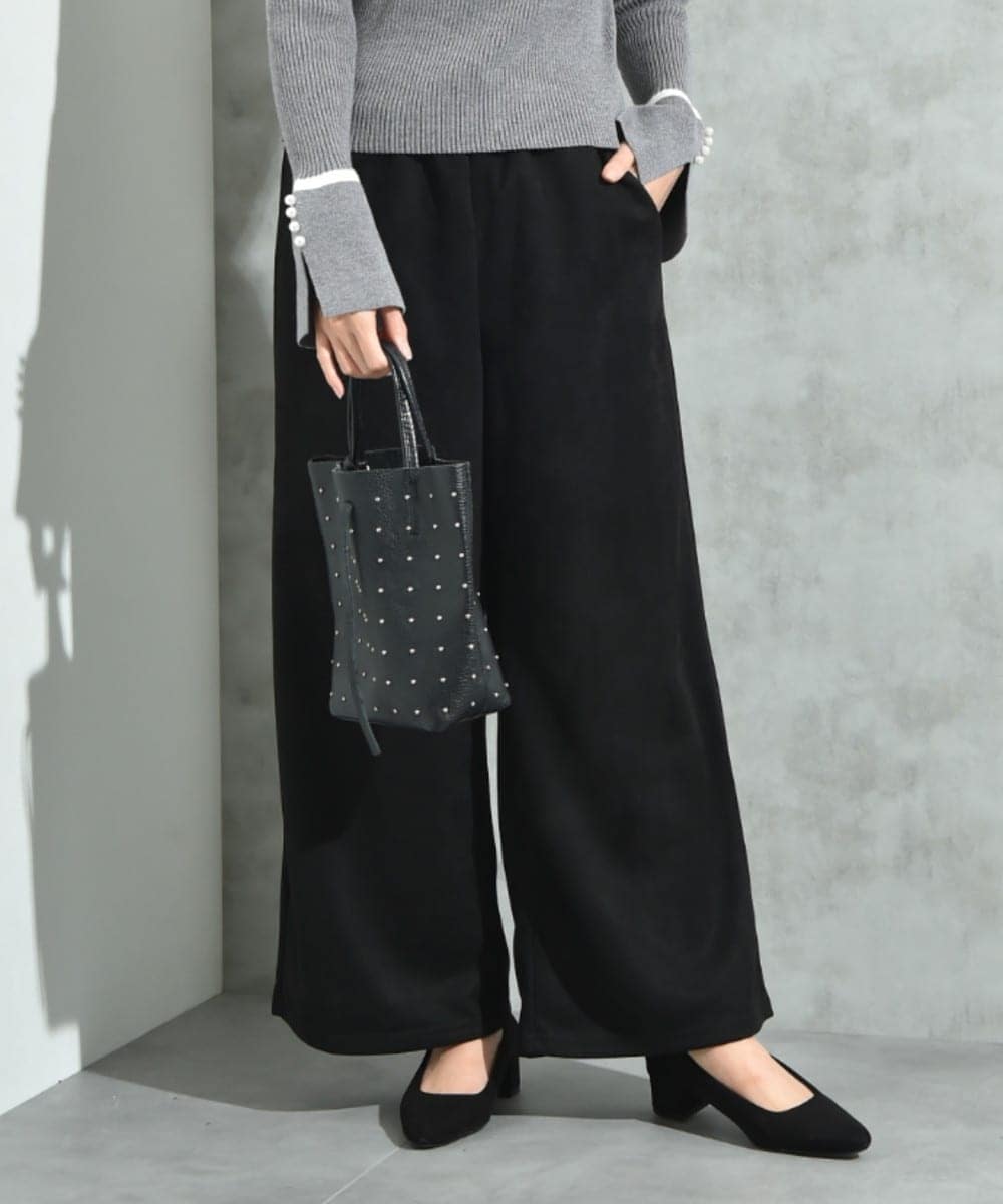 肌触りの良いフェイクスエード素材で仕立てたすっきりシルエットのイージーパンツ。少し高めの位置のウエストがスタイルアップのポイントです。ストレッチ性の高いカット素材を使用しているので履き心地はお墨付き!ウエストにゴムドロストを使用し、嬉しいポケット付きで実用性もバッチリ◎
