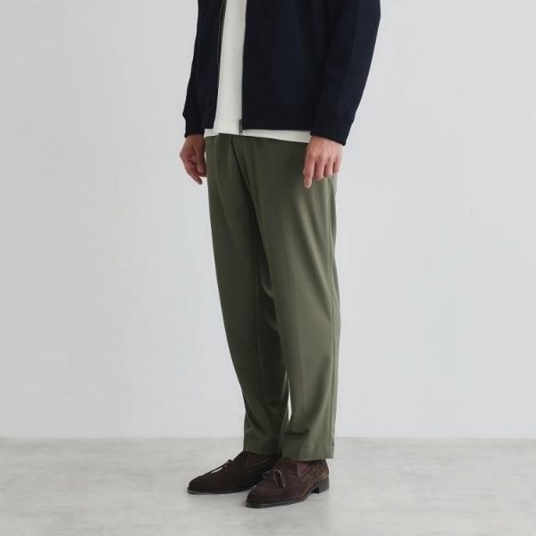 サイドゴアウエスト仕様でフィット感◎ ON/OFF兼用シーズンレスのスリムスラックス