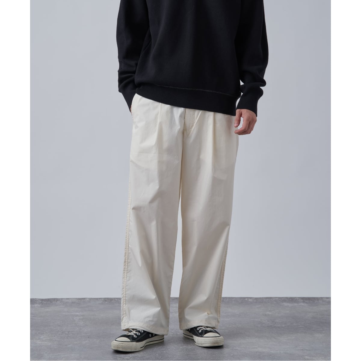 ミリタリーのオーバーパンツをベースに、現代的なワイドパンツへとアップデート。