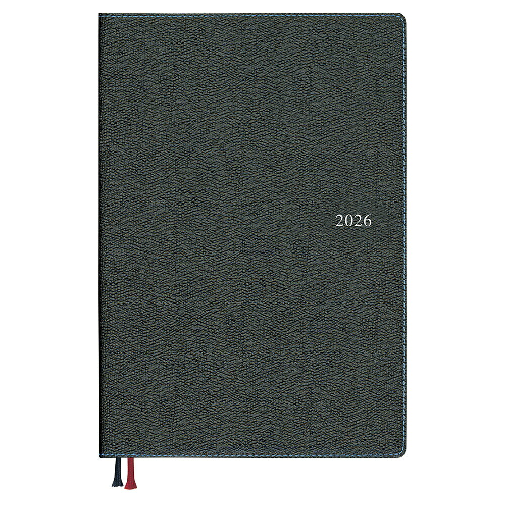 縦に時間ごとの目盛りが用意されたバーチカルレイアウト。時間を細かく区切って管理しやすいのが特徴で、仕事で時間刻みのアポイントが入る営業職の方や、隙間時間を見つけて効率をあげたい方にもおすすめです。ステッチがポイントのオフィスカジュアルタイプ。●日付期間(掲載期間):月間:2025年12月〜2026年12月 週間:2025年12月〜2026年12月●罫内容:週間●記入欄:1週間バーチカル●サイズ(判型):B5●寸法:265×185×14mm●色:ブラック●表紙:PVC●中紙:手帳用紙●ページ数:224ページ