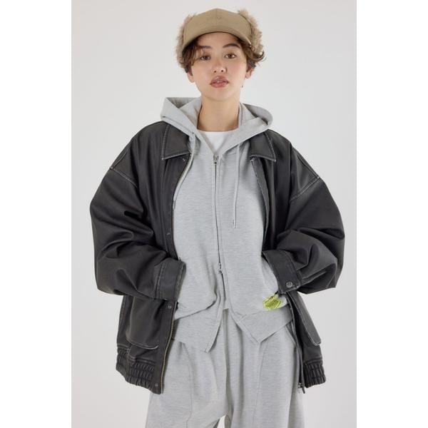 ■ポイントヴィンテージから着想を得たデザインで、羽織るだけでマニッシュな雰囲気を演出できるレザージャケット。程よくオーバーサイズで丸みを帯びたシルエット。ヴィンテージ加工で重厚感を演出。オーバーシルエットなので抜け感をプラスしてくれ、インナーのレイヤードスタイルにも困らないアイテムです。秋から春先まで長く使える便利なアウターです。ユニセックスで着用頂けるアイテムです。■ディテールヴィンテージ加工によってこなれた風合いを演出。フラップポケットディテールでリアルを表現。■スタイリングメンズっぽくデニムやワイドパンツ合わせはもちろんスカートなどの女性らしいアイテムと組み合わせるのもおすすめ。また今期はSHAREシリーズのスウェットパンツと合わせるのもおすすめ。■生地製品洗い用合成皮革を使用しており、高級感のある加工感があります。強い摩擦が加わると色移り、色落ちが発生するかと思います。■透け感:なし■裏 地:あり■伸縮性:なし■光沢感:ややあり[注意事項]※画像の商品はサンプルです。実際の商品と仕様、加工が若干異なる場合があります。※画像の商品は光の照射や角度、お使いのモニター環境により、実物と色味が異なる場合がございます。※着用、お取り扱いの際は、アテンションタグをご確認ください。