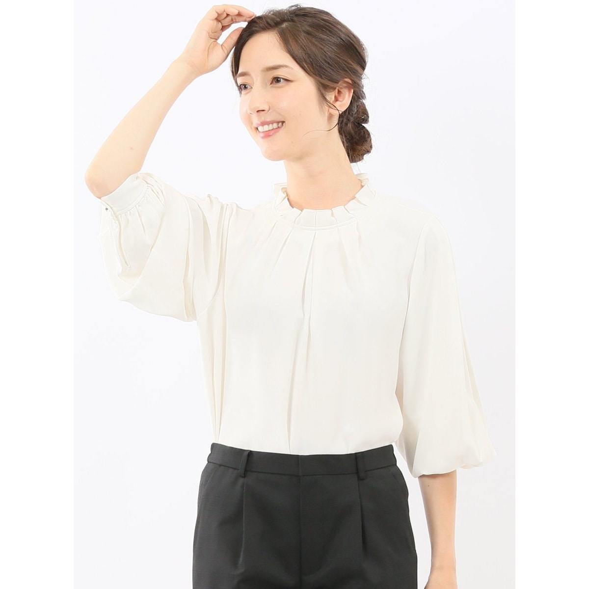 タック衿 長袖プルオーバーブラウス