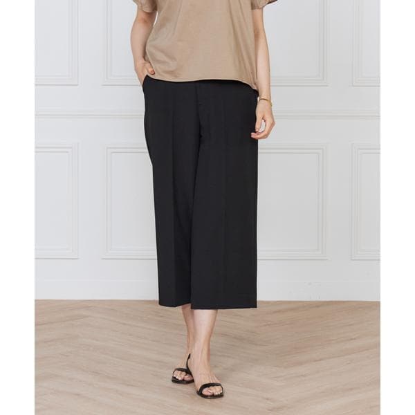■デザインすっきりとしたシルエットのワイドクロップトパンツ。ウエスト周りをすっきりと見せつつ、後ろゴム仕様にすることで穿き心地の良さをプラスしました。程良い分量感と、シンプルなディテールで汎用性の高いデザインに仕上げました。■素材シックアンドシーンのポリエステル糸を使用したメランジ感のある2重織の2WAY素材です。・水洗い可・ポケットあり・裏地なし・後ろウエストゴム仕様■サンプル撮影商品画像の商品はサンプルです。実際の商品とはサイズや色味、素材、デザイン等の仕様が若干変更になる場合がございます。■カラーについては、可能な限り実際の商品に近いカラーで撮影をおこなっておりますが、照明の関係により実際の製品とは色味が違って見える場合があります。またパソコン・スマートフォンなどの環境により、若干製品と画像のカラーが異なる場合もございます。現物と画像のカラー差異については返品理由となりませんので、予めご了承ください。■サイズ表記はあくまで目安となります。