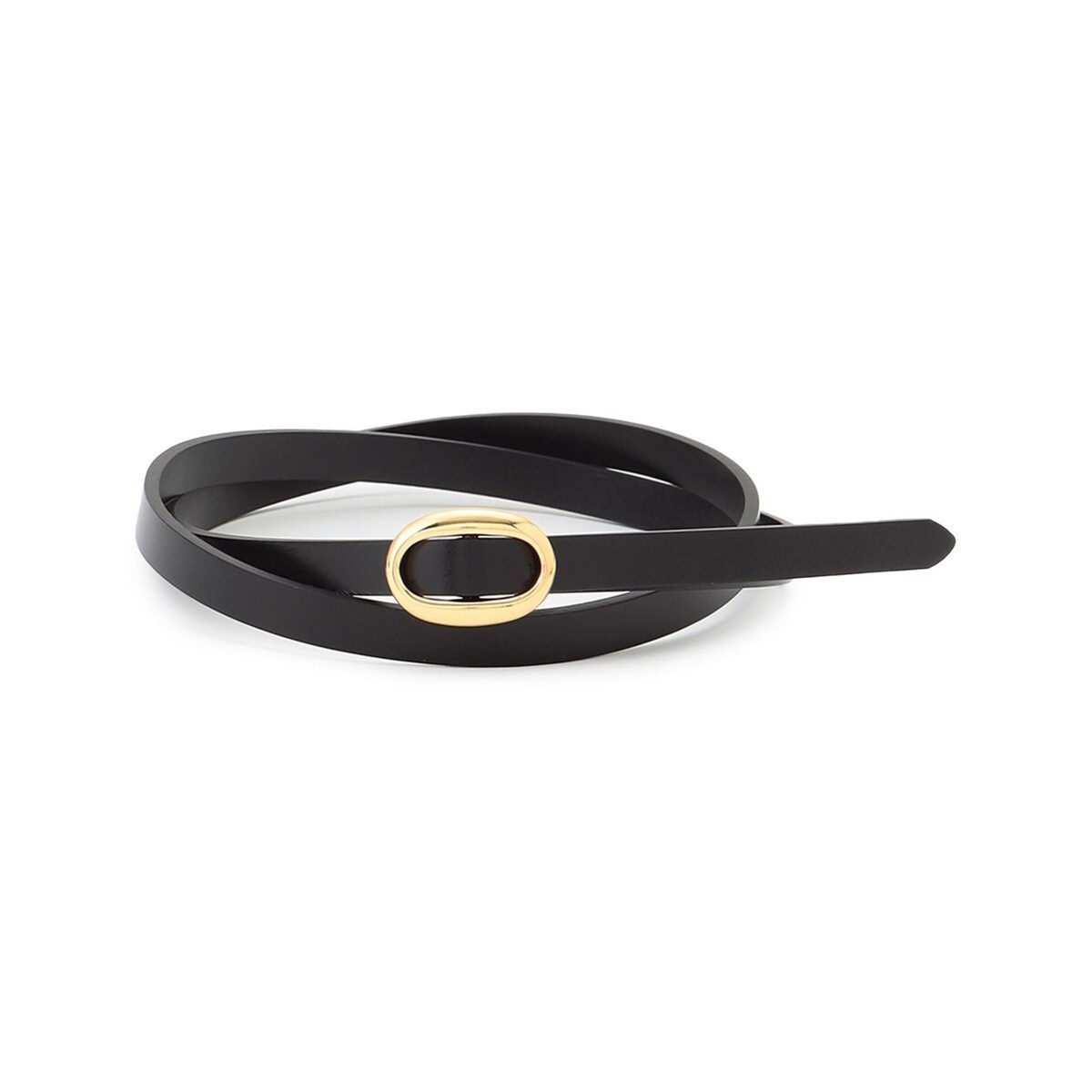 洗練された印象を与える、オーバルバックルが目をひくナローベルト