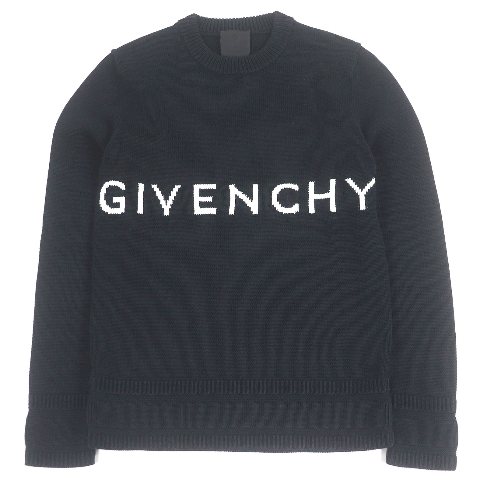 美品□GIVENCHY ジバンシィ BM900G400M ウール100% ロングスリーブ ロゴニット セーター ブラック ホワイト S 正規品 メンズオススメ◎【中古】