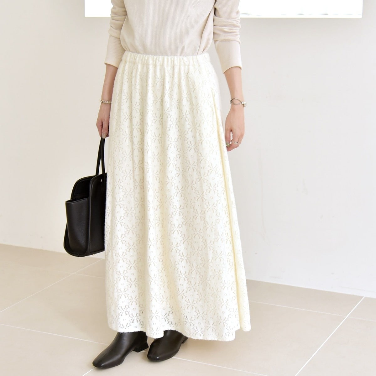 甘くなりすぎないフラワーレースが、カジュアルなアイテムとも合わせやすく◎