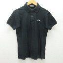 D■ラコステ/CHEMISE LACOSTE ワニ刺繍 半袖ポロシャツ【3】黒/MENS/99【中古】■
