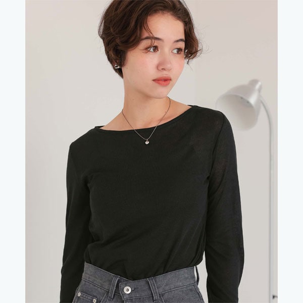 Spick and Span ソフトフライスシアーボートネックTEE ブラック