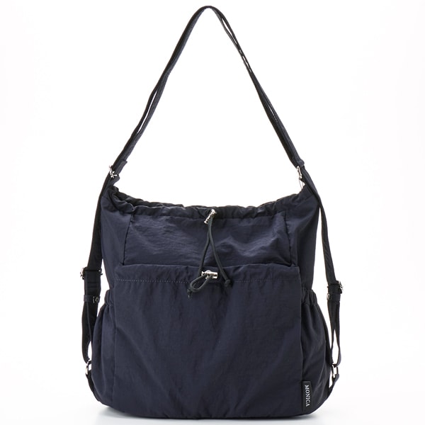 フロントのドロストデザインがポイントの2WAYバッグ。