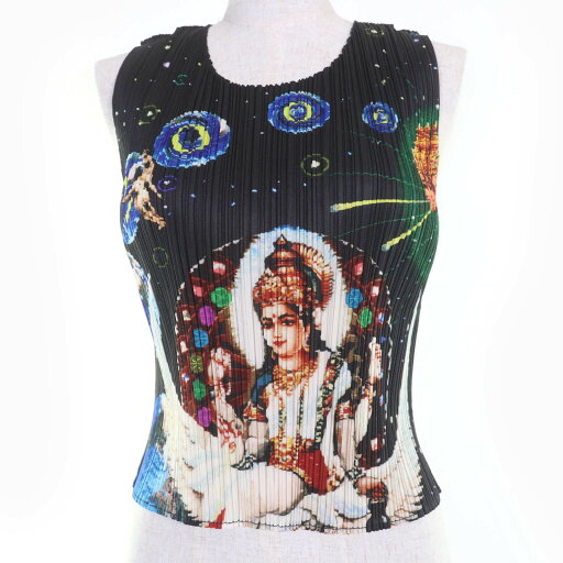 極美品▲PLEATS PLEASE プリーツプリーズ イッセイミヤケ PP05-JK001 ラウンドネック ノースリーブ トップス ブラック 4 日本製 正規品 レディース【中古】