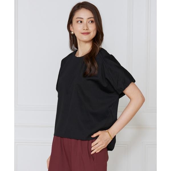 ■デザイン背中にたっぷりと施したギャザーが、ふんわりとした立体感を生み出し、自然にボディーを包み込むデザインブラウス。前身頃は無駄のないすっきりとしたシルエットで、上品さと清潔感を演出します。二の腕をさりげなくカバーする袖丈と、後ろボタン開きの仕様で、着脱のしやすさと後ろ姿のアクセントを両立。ゆったりとしたサイズ感はストレスフリーで、清涼感のある快適な着心地を叶えます。カラー展開は、甘さを抑えたモードなトーンを中心に、大人の女性にふさわしい洗練されたラインアップをご用意しました。オンからオフまで幅広く活躍する一枚です。■素材綿とポリエステルを掛け合わせたハイゲージポンチ素材。コンパクト紡績により毛羽を極限まで抑え、なめらかで上品な表情を実現しました。さらにマーセライズ加工による自然な光沢感が特徴です。保温性と放湿性を兼ね備え、静電気の発生を抑える帯電防止加工も施されています。お洗濯後も型崩れしにくく、快適さと美しさを長く保つ素材です。・水洗い可・バックボタンあり■サンプル撮影商品画像の商品はサンプルです。実際の商品とはサイズや色味、素材、デザイン等の仕様が若干変更になる場合がございます。■カラーについては、可能な限り実際の商品に近いカラーで撮影をおこなっておりますが、照明の関係により実際の製品とは色味が違って見える場合があります。またパソコン・スマートフォンなどの環境により、若干製品と画像のカラーが異なる場合もございます。現物と画像のカラー差異については返品理由となりませんので、予めご了承ください。■サイズ表記はあくまで目安となります。