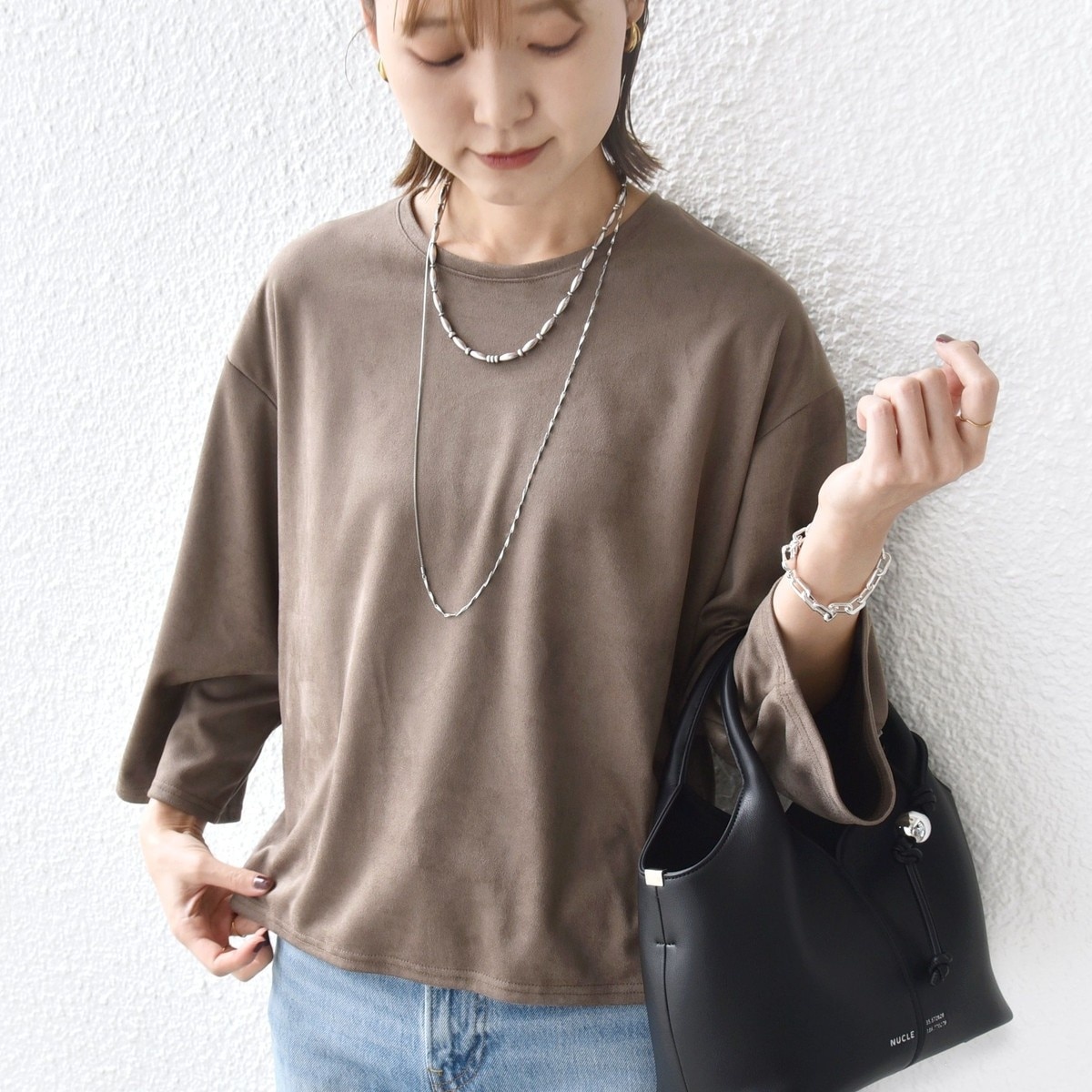 少し肩を落として袖はワイドシルエットにしてリラックス感を。