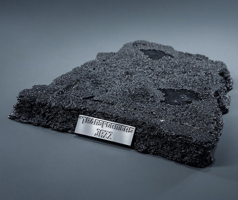 当「デラックス版」には「通常版」(別売り)の内容に加えて、ダメージ脊椎、交換式のダメージアーマー×7個、そしてジオラマベースが付属します。上半身は下半身から分離可能で、ダメージ脊椎を取り付けることで劇中の英雄的な最期の姿を再現可能。ダメージアーマー×7個は通常のアーマーパーツとの脱着式で、戦闘後の姿を再現可能です。ジオラマベースの地面は水たまりのあるアスファルトを模しており、劇中でのジャズの初登場シーンを再現可能。また、ジオラマベースは映画『トランスフォーマー』に基づく別売りのDLXフィギュアシリーズに付属のジオラマベースと連携可能です。