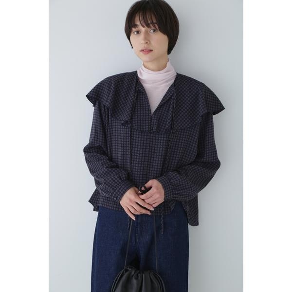 襟付きギャザーブラウス