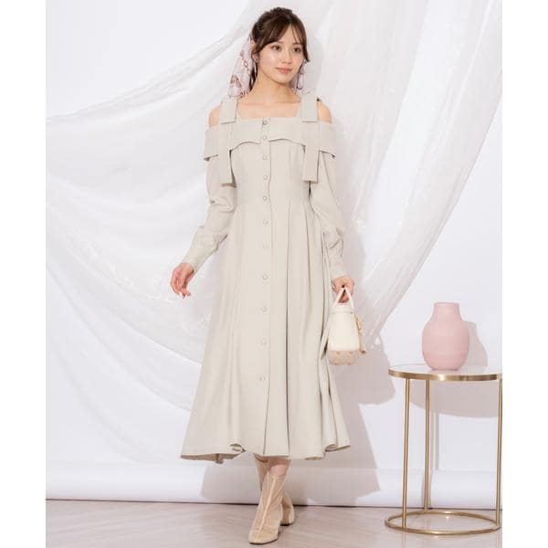 上品な肌見せで着こなすオフショル風ロングシャツワンピース【Design】・デコルテ周りをスッキリと見せてくれるオフショル風のデザインが魅力のロングワンピース。・ショルダー部分は取り外し可能なリボンをトッピング♪・飾りリボンなのでほどける心配がなく、幅も広めなので安心してご着用いただけます。・肌見せしつつ、ロングスリーブ&ロング丈でバランスよく仕上げました。・ウエストタックが脚長効果&細見え効果を演出◎・後ろはシャーリングで伸縮性があり、レースアップでサイズ感の調整が可能です!・肩紐のリボンはボタン留め仕様で取り外し可能。【Fabic】・ナチュラルな風合いのある生地を使用。・ネイビーはこれからの季節にぴったりなデニム調の生地を使用。・ハリのある裏地付き。・ベージュ、ミント、ネイビー、ブラックチェックの4色展開となります。【Care】ドライクリーニング