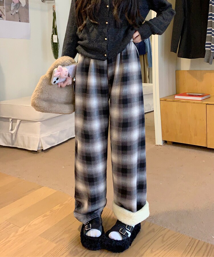 寒い季節にぴったり!チェック柄の裏ボア起毛パンツ