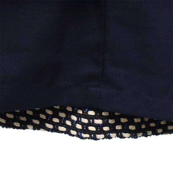 ポケットにしつけ糸が付いたままの状態となっております。裏地が有ります。所々に汚れと多少の毛羽立ちが有ります。左裾付近にロゴ入り金具が有ります。他、特に気になるようなダメージはございません。