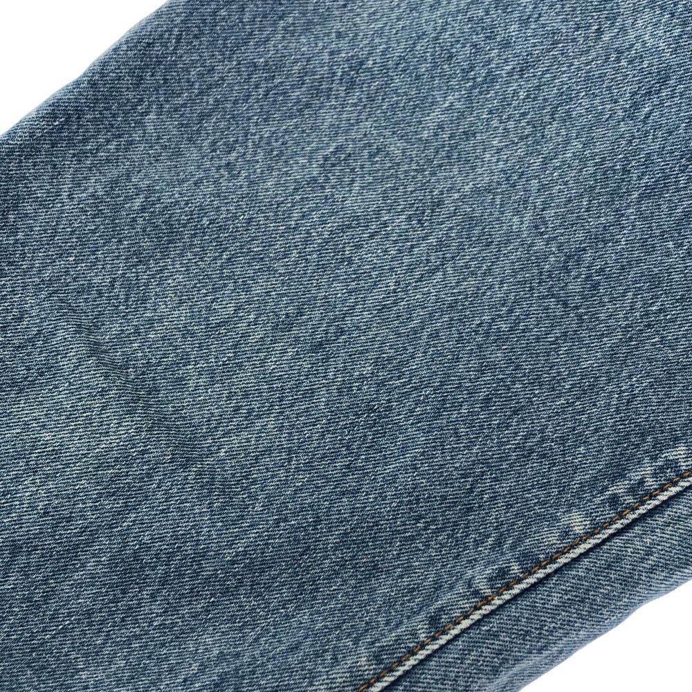 デニム特有のスレ・アタリがございます。全体的に薄らと汚れており、左後身頃と両裾に少し目立つよごれがあります。ウエスト周りに若干のほつれもあります。ジーンズならではエイジングとしてご理解いただき、ご購入をお願い致します。