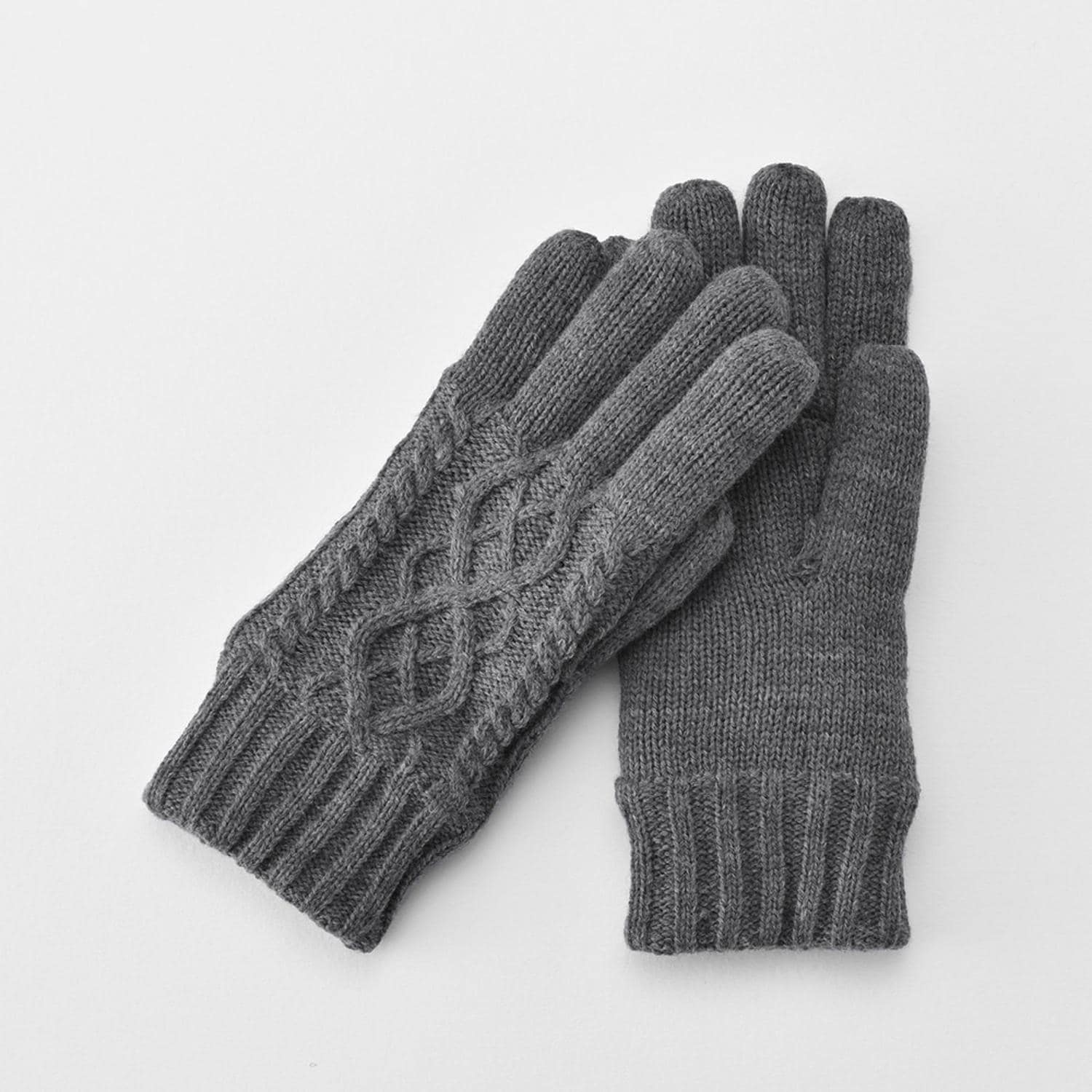 ほっこりやわらかな雰囲気のニットグローブ。ケーブル編みニットグローブ。裏地はやわらかくあたたかなマイクロボアを使用。