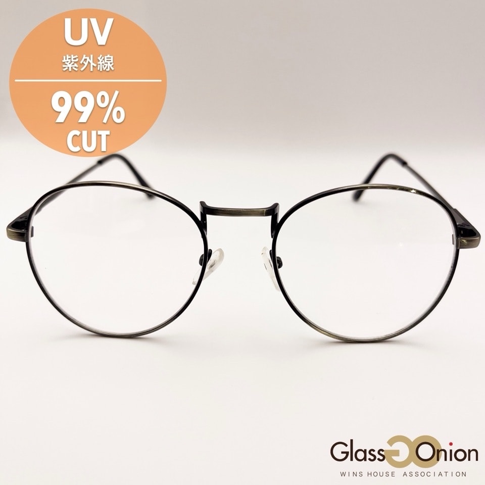 未使用 サングラス 紫外線99%カット 透明レンズ 金縁丸型 ラウンド