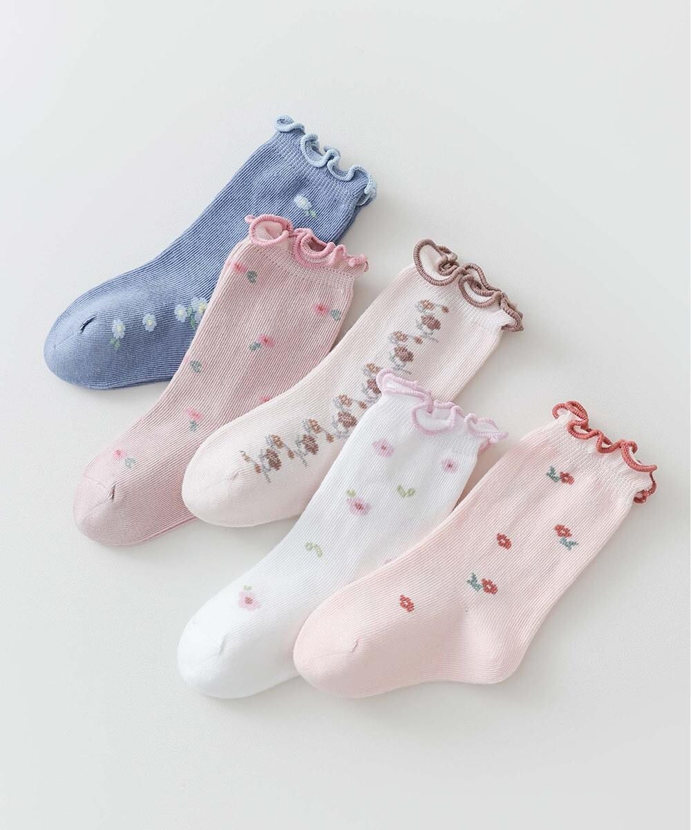 いろいろな柄のフリルソックス。5足セット。Sサイズは0-1歳に適しています。推奨サイズ9-11cm。
