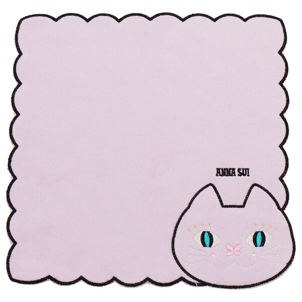 インパクトのあるネコをコーナーいっぱいに刺繍しました。折り畳むと、まるでそこにネコがいるかのような、ユニークで可愛らしい一枚。なめらかなシャーリング生地を使っており、触り心地がとても良く、ふんわり柔らか、吸水性の良い素材です。