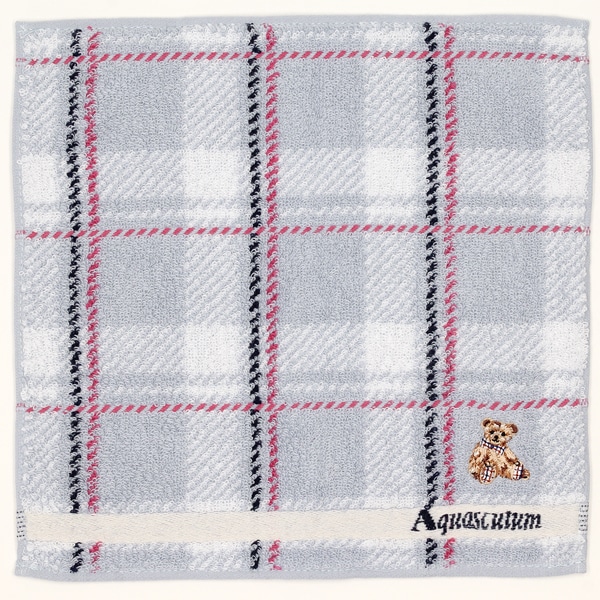 チェックにクマモチーフをあしらったタオルハンカチ。人気のクマモチーフは、ギフトにもおすすめの1枚です。