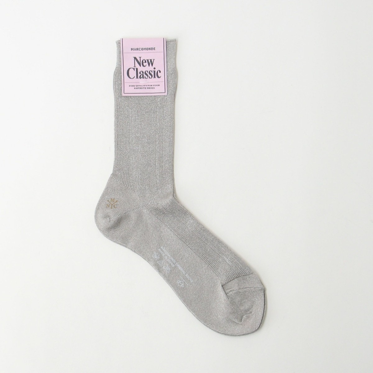 細かい編地の中にラメ糸が入り、上品なキラキラ感が目を引くリブソックス。