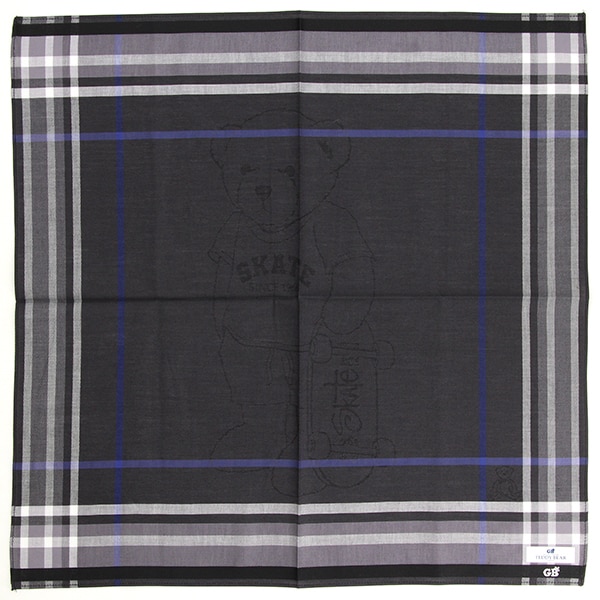 ベーシックなチェックに、ジャガードでテディアイコンを中心にスケーターベアをデザインしたハンカチーフです。広げた際も可愛い一枚です。