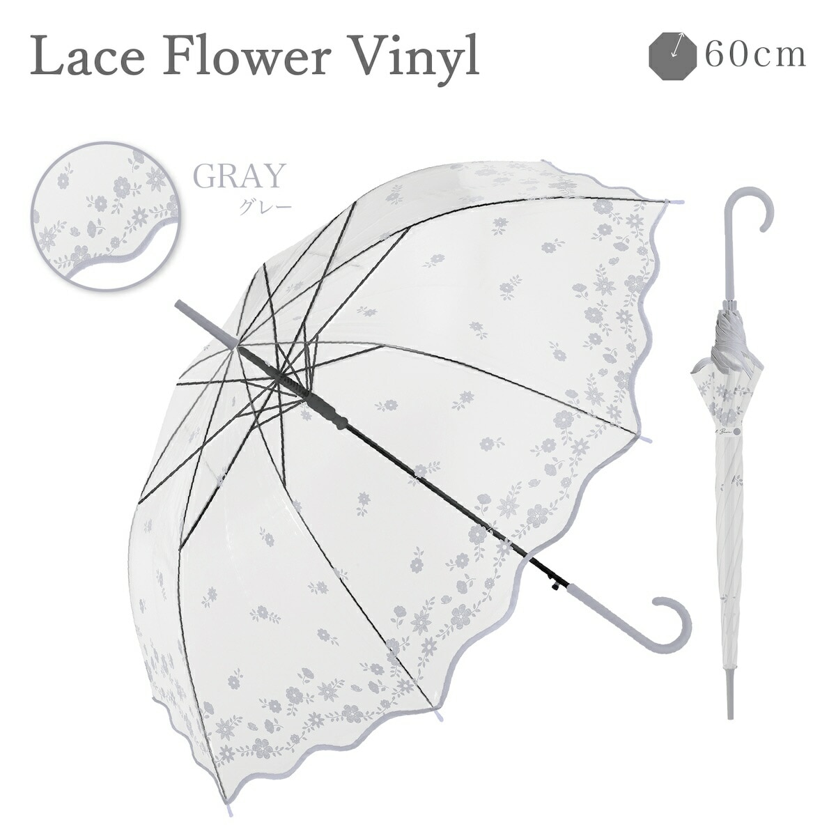 流行りの裾メロウ傘が登場!繊細なお花レース柄が女性らしさをアップします。