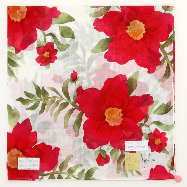 定番の大判プリントハンカチ。ナチュラル感の有る素材に形態安定の加工をプラスしています。らしさは保ち、便利さをプラスしました。