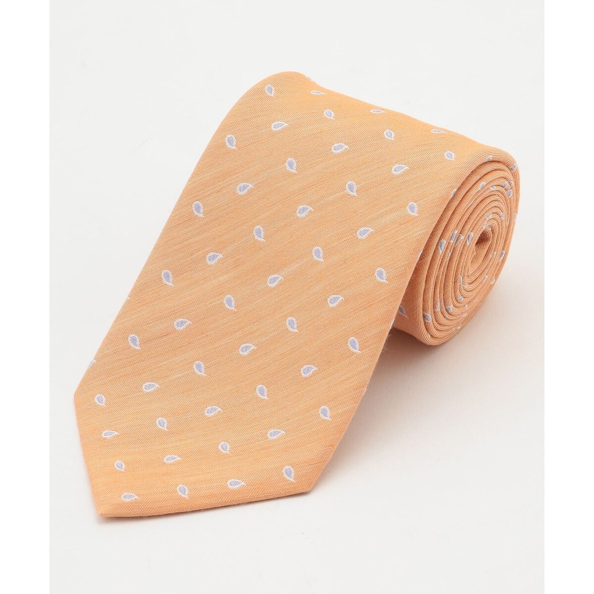 シルク48%リネン52%のレジメンタルネクタイ。明るいカラーがVゾーンを彩ります。