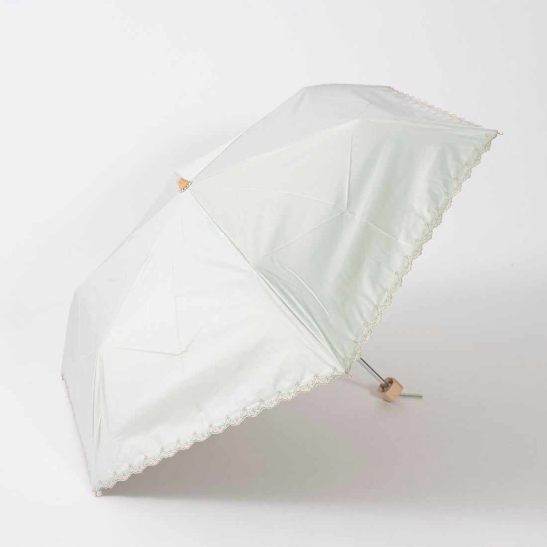 晴雨兼用 カシュネ cachenez / PUフラワーラメ刺繍トップレス2段折りたたみ傘