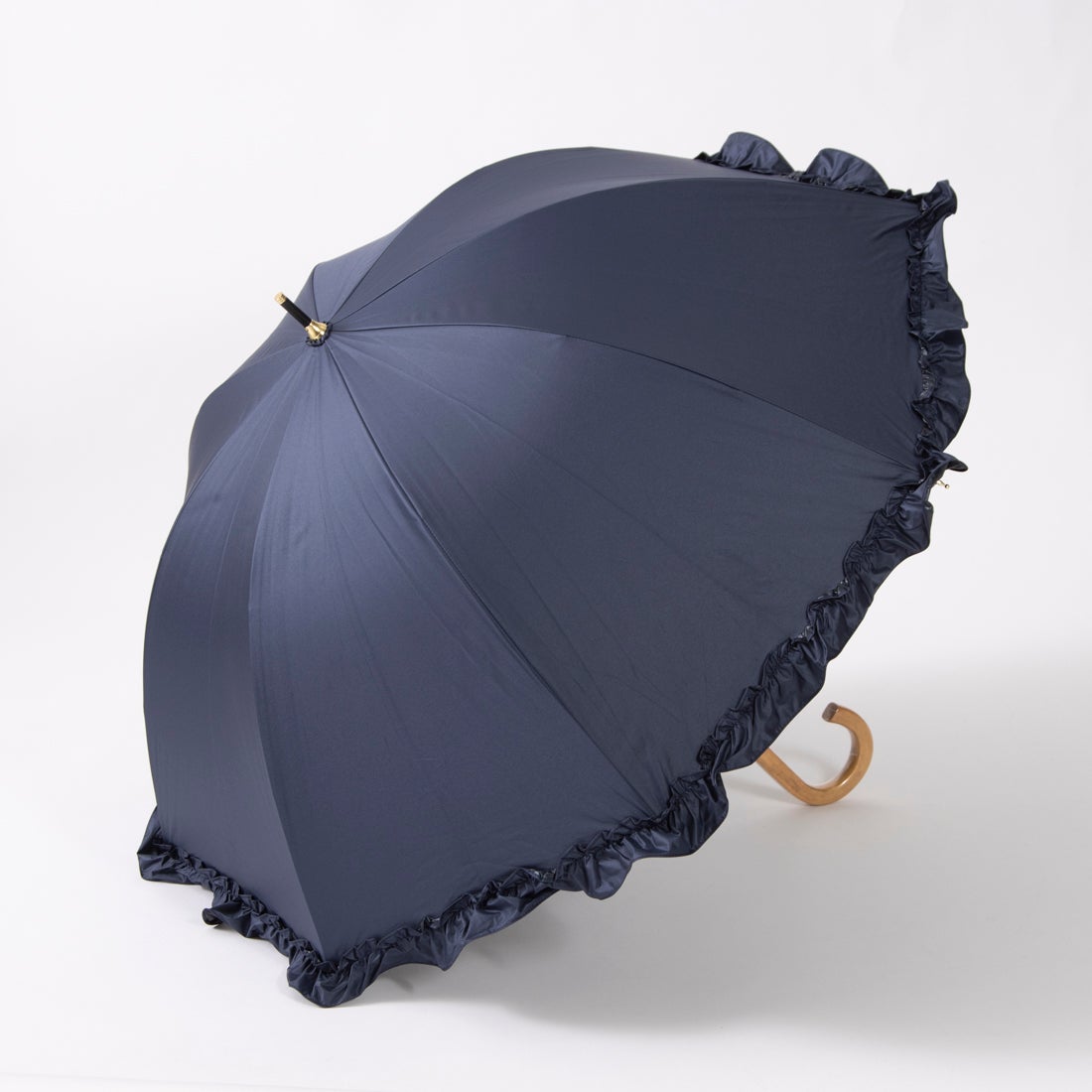 裾の部分に大きなフリルをあしらった華やかなイメージの長傘です。