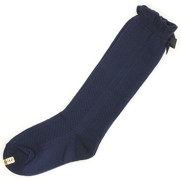 紺 ネイビー フリーサイズ ハイソックス ニーハイソックス リボン 靴下 女の子 キッズ ガールズ 20.0 20.5 21.0 21.5 22.0 22.5 23.0 23.5 24.0
