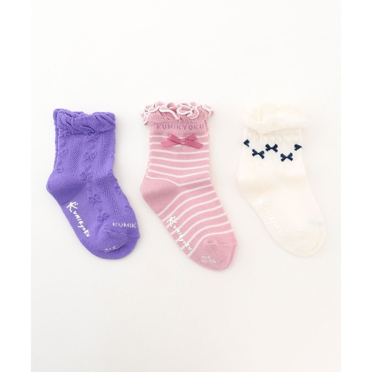 ■デザイン3パターンの柄ソックスがセットになったお得なアイテムです。履き口もフリル仕様になっていて、靴から覗くデザインにもこだわりました。気分によって選んでいただけるため、いつものオシャレをより一層お楽しみいただけます。組曲オリジナルのロゴ入りの台紙パッケージされており、ギフトにもおすすめないアイテムです。