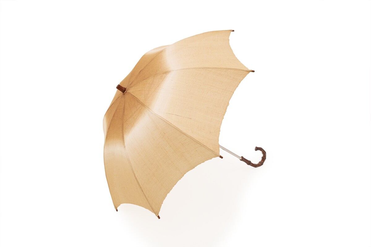 持ち手の美しい竹が際立つ「茶染め」や「柿渋染め」の日傘です。