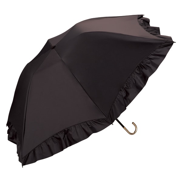 華やかで大きめのフリルをあしらった、女性らしく上品な折りたたみ日傘。