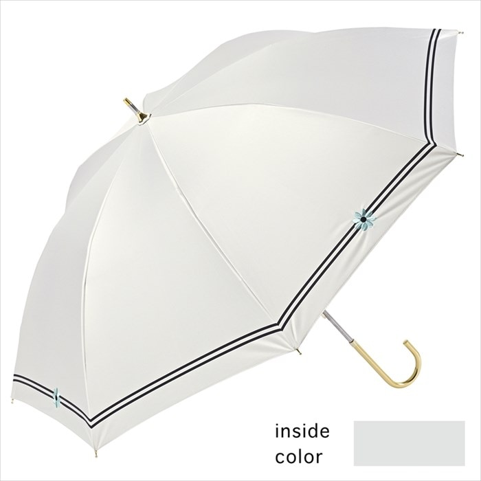 ニフティカラーズ 傘 日傘 長傘 レディース 軽量 nifty colors 晴雨兼用 UVカット 遮光 ブランド おしゃれ 手開き 遮光ボーダー花刺繍 2411 OffWhite