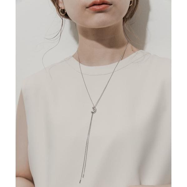 華奢なスネークチェーンにぽってりとした半円型のメタルモチーフを合わせたボウタイ風のネックレス。
