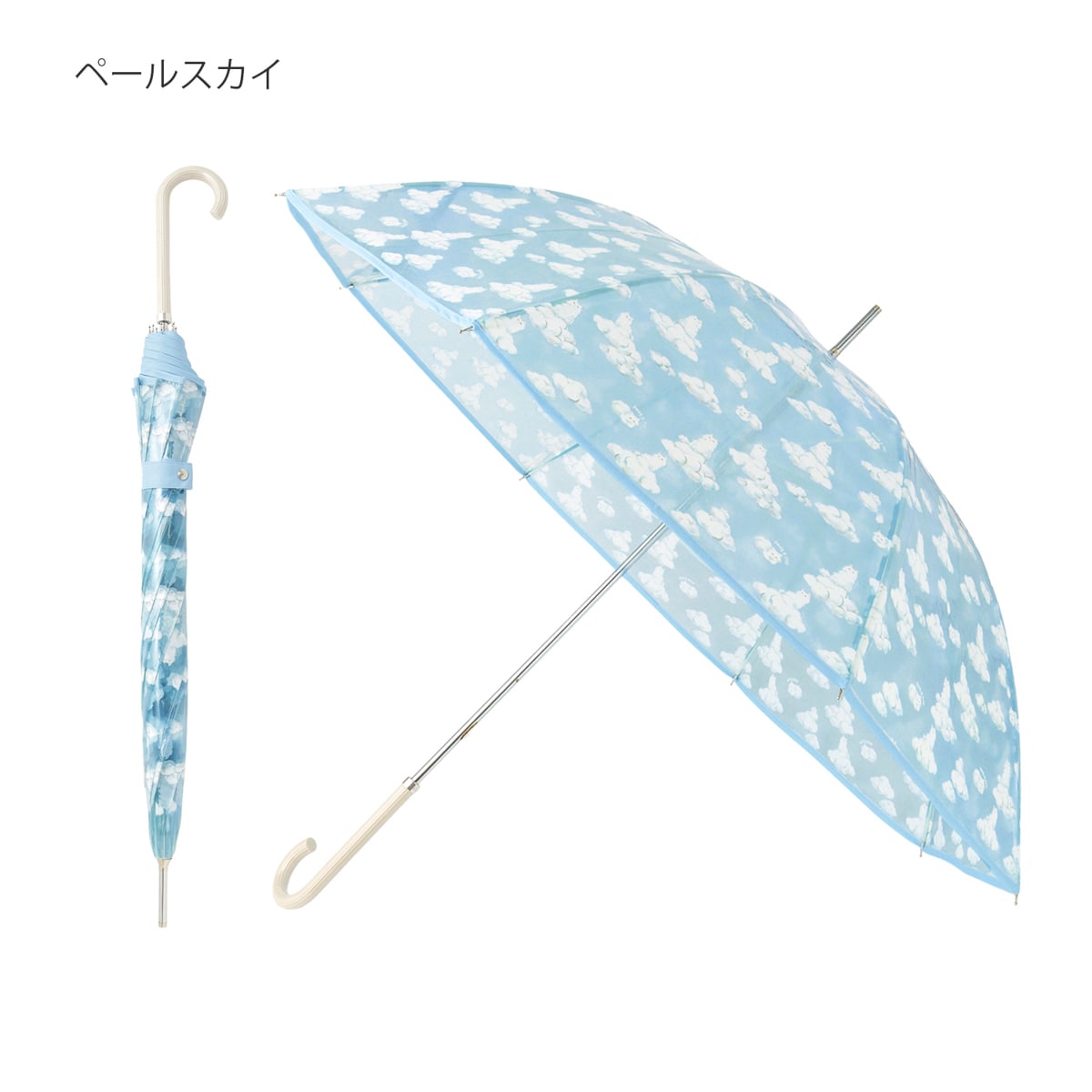 ブランドのアイコン猫のジプシーが雲にのったプリントが見ているだけで楽しい、愛らしさ満点のビニール傘です。