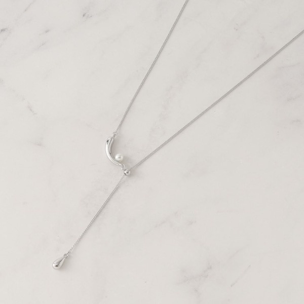 三日月型のメタルパーツにフェイクパールを配したスライドネックレス。