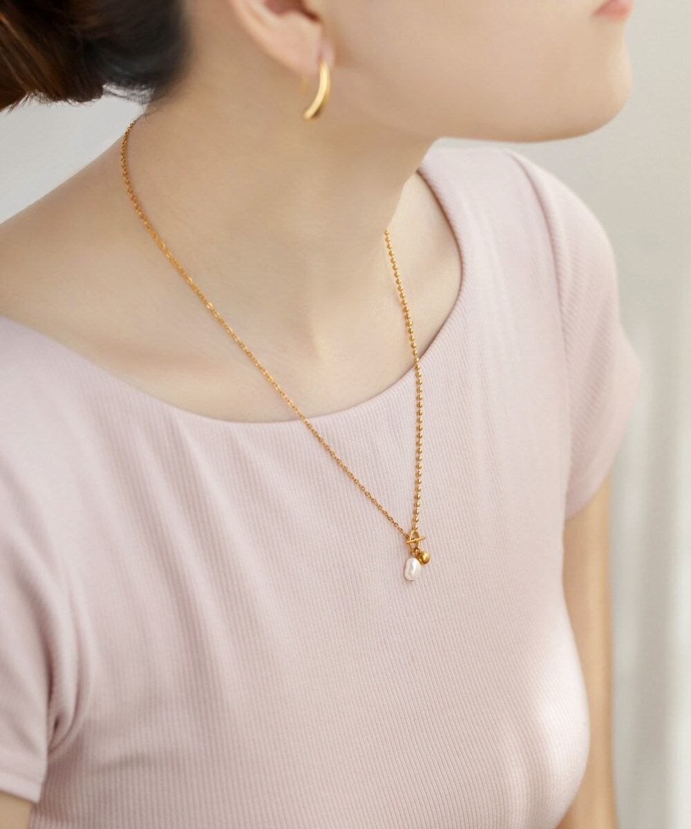 【ステンレス】チャーム×パールネックレス