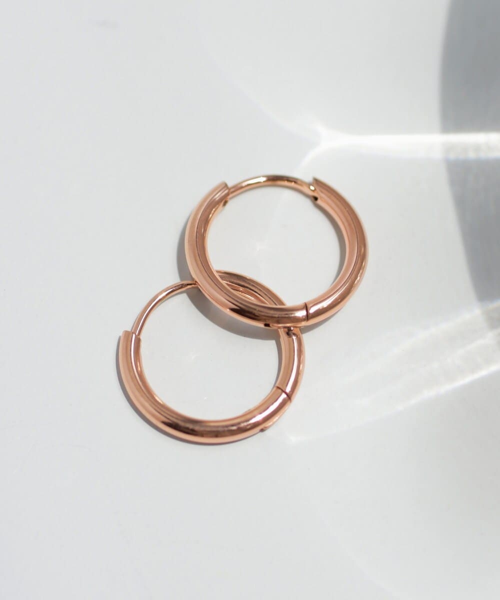 小ぶりでシンプルなフープデザインが、洗練された横顔に仕上げるピアス。