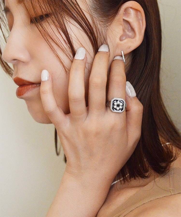 ニッケルフリー ホワイトパール調 シルバーパール調 リング