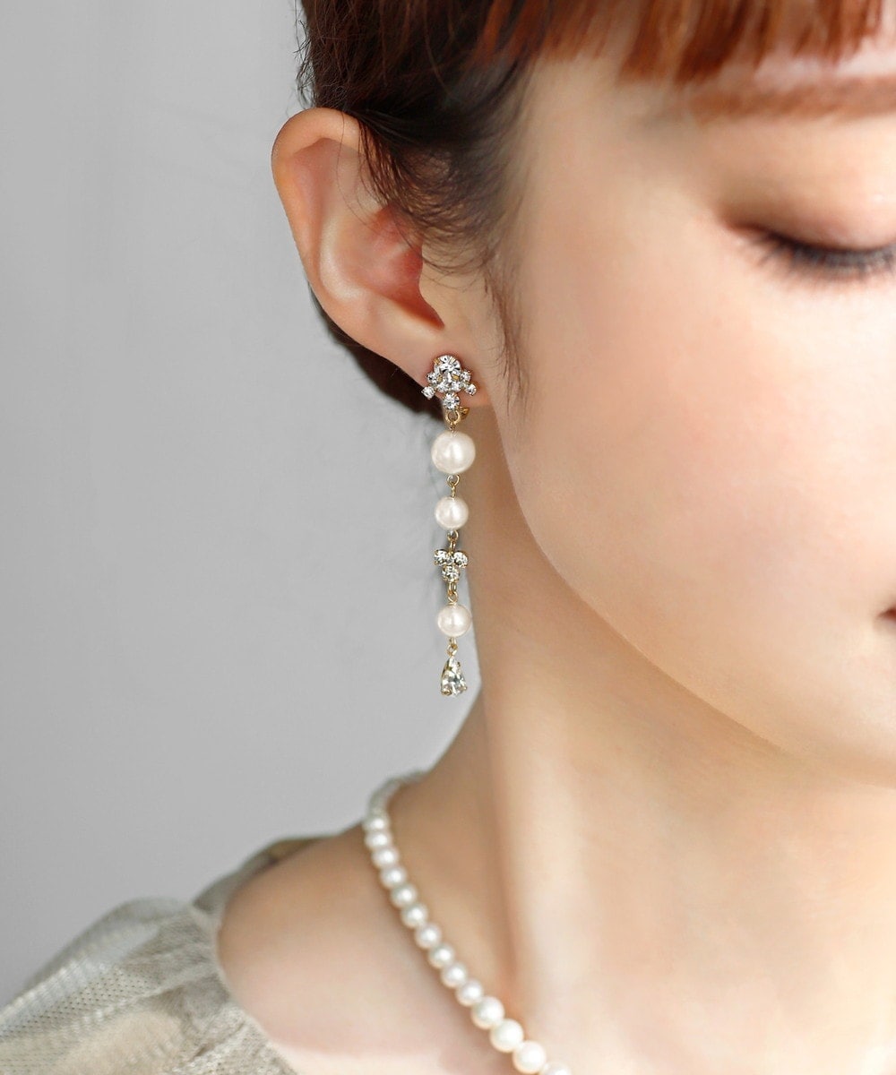 パールイヤリング ビジュー 揺れる 大人可愛い フォーマル 結婚式 入学式
