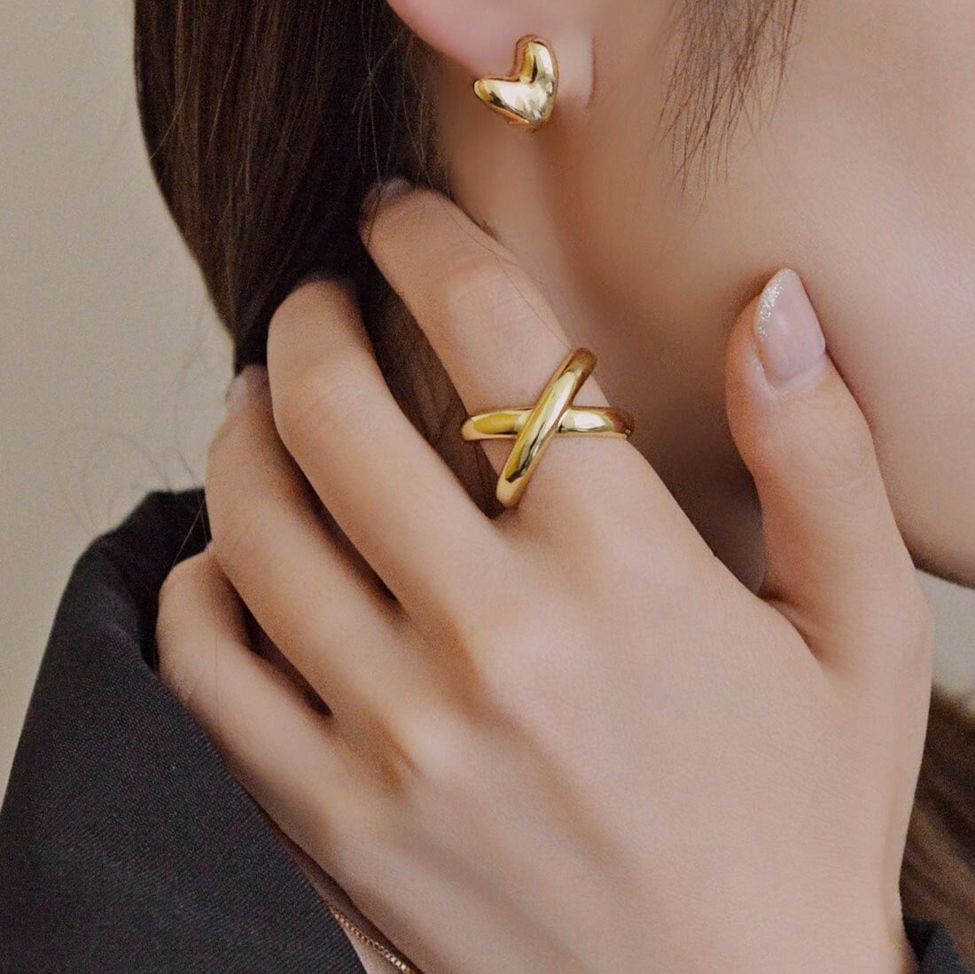 ニッケルフリー クロスライン メタルリング フリーサイズ シルバー ゴールド リング 指輪 アクセサリー