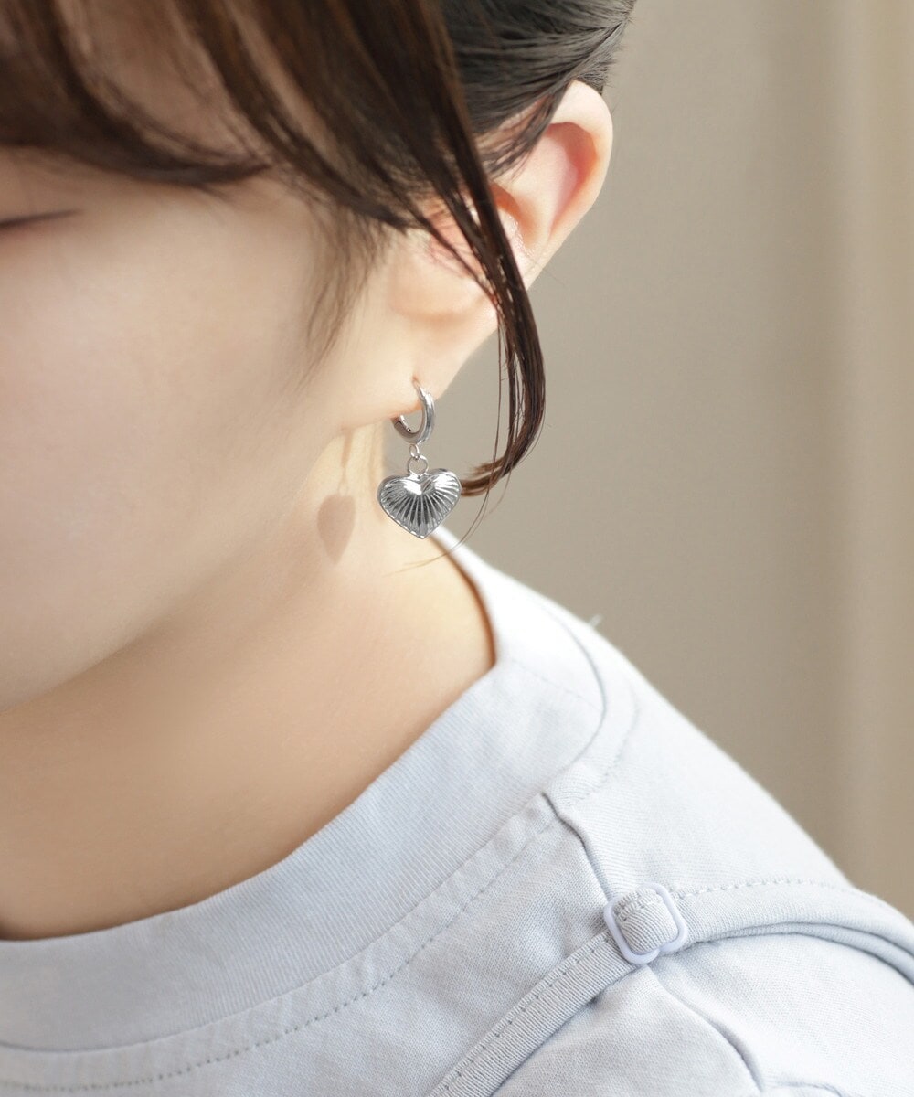 イヤリング 356 ステンレス ハートのフープイヤリング サージカルステンレス 金属アレルギー対応金具使用